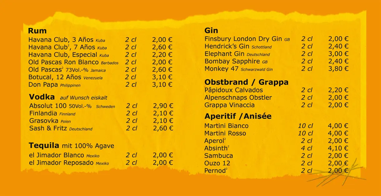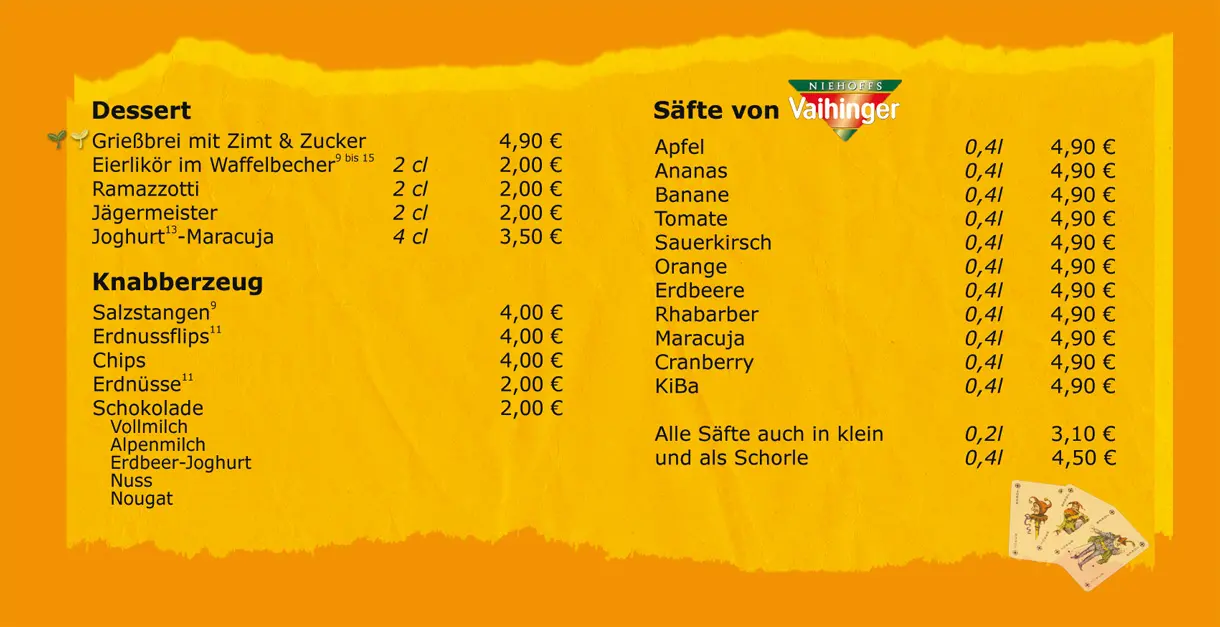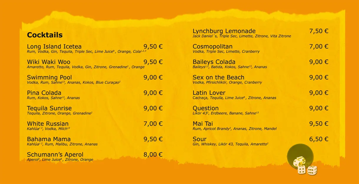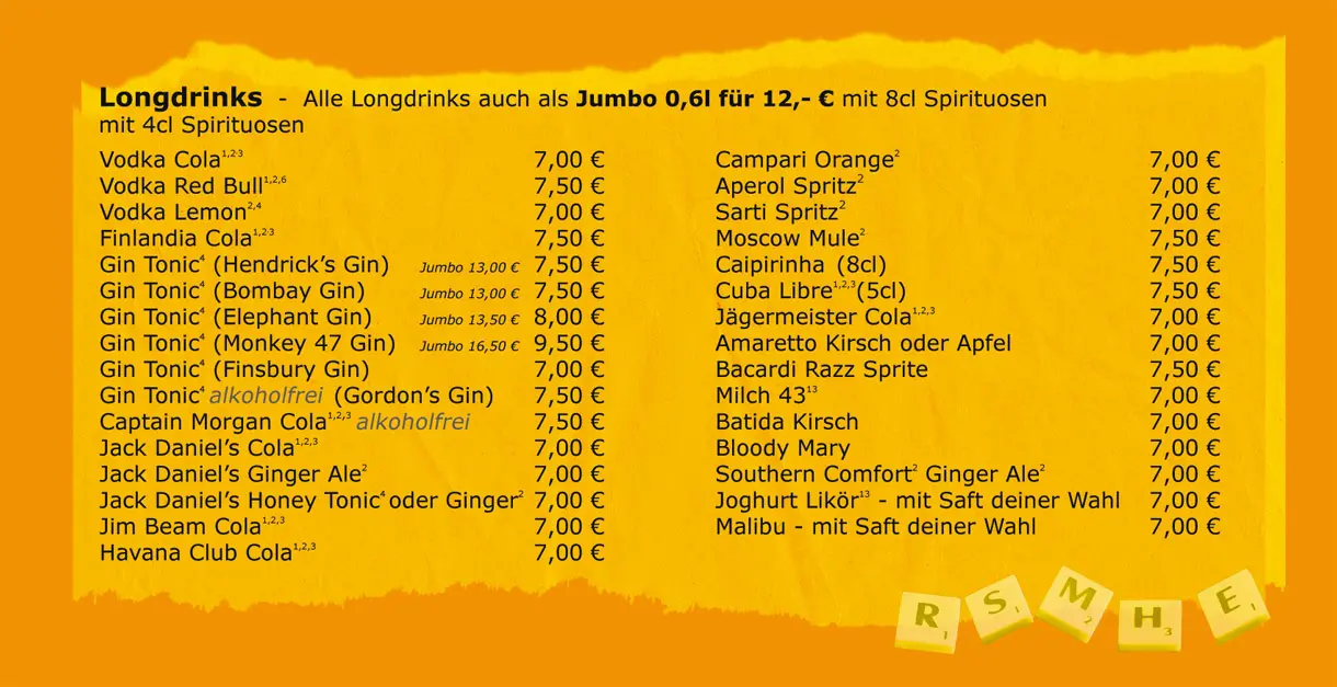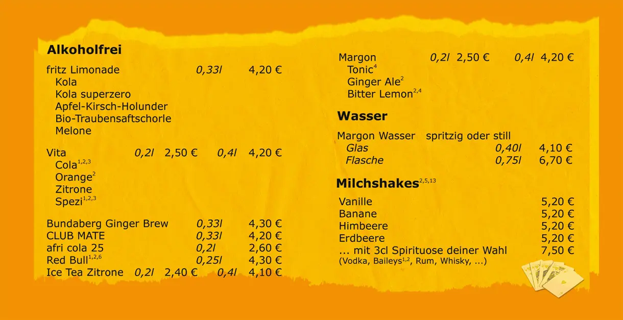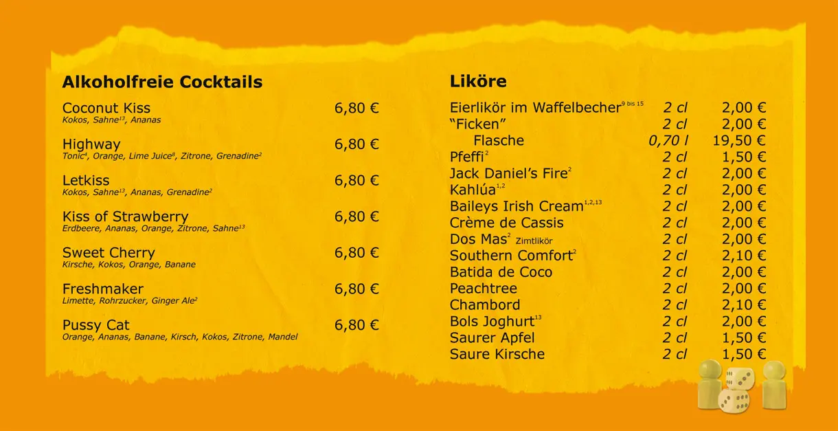 Barneby - Die Spielebar - Speisen und Getränke